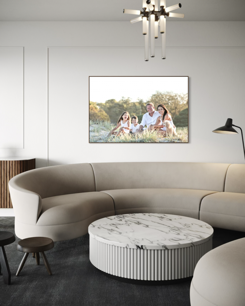 TexFrame nabízí světelné i nesvětelné varianty, různé formáty a rámové dekory, které umožňují citlivé začlenění do soukromých i komerčních interiérů.